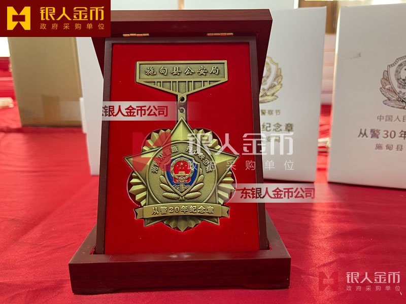 公安民警輔警安保從警10年榮譽銅質紀念章、從警20年榮譽銀質紀念章、從警30年金質榮譽紀念章