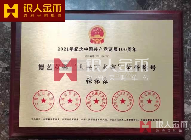 中國美術家協會、全國書畫藝術委員會、中國書法家協會人民藝術家榮譽稱號牌匾證書(圖)