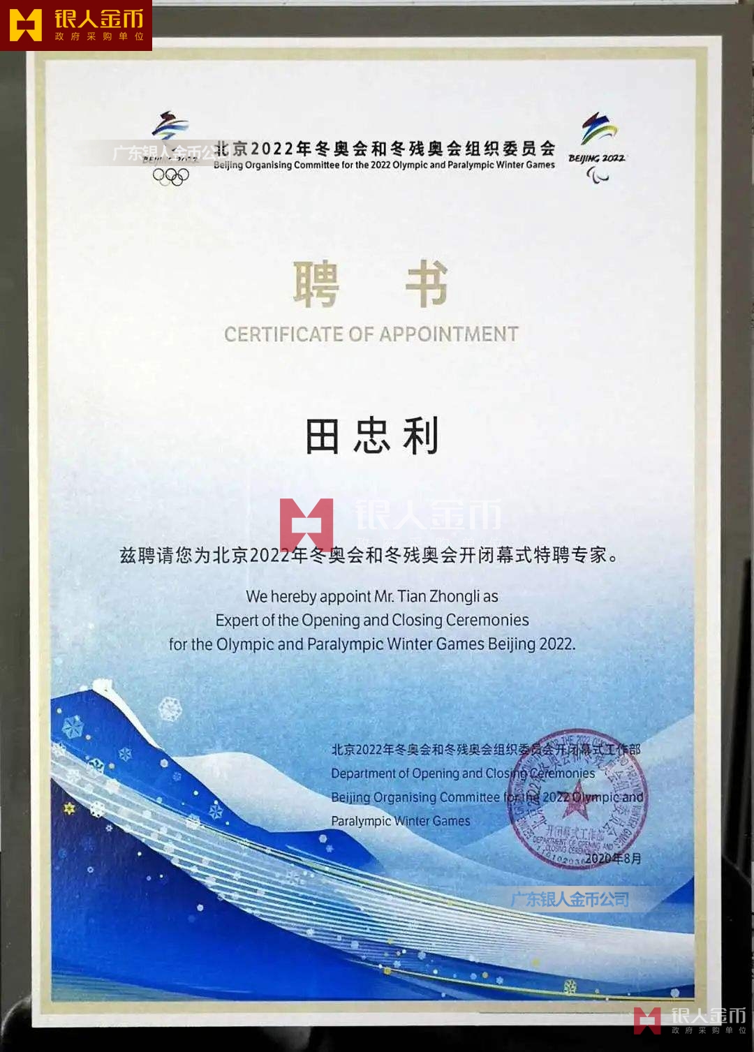 | 中共張家口市委組織部 | 國家速滑館場館運行團隊 | 國家體育總局對外聯絡司 |