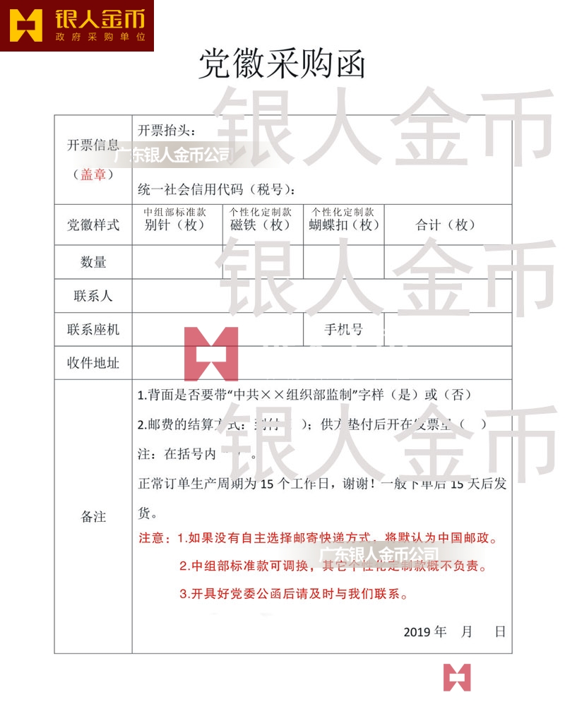 組織部確定的生產制作、銷售購買、定制采購黨員徽章生產廠家和黨徽正規購買渠道與訂制廠商。黨徽采購函模板樣式式樣圖樣圖案圖稿文檔文稿表格單據文件。