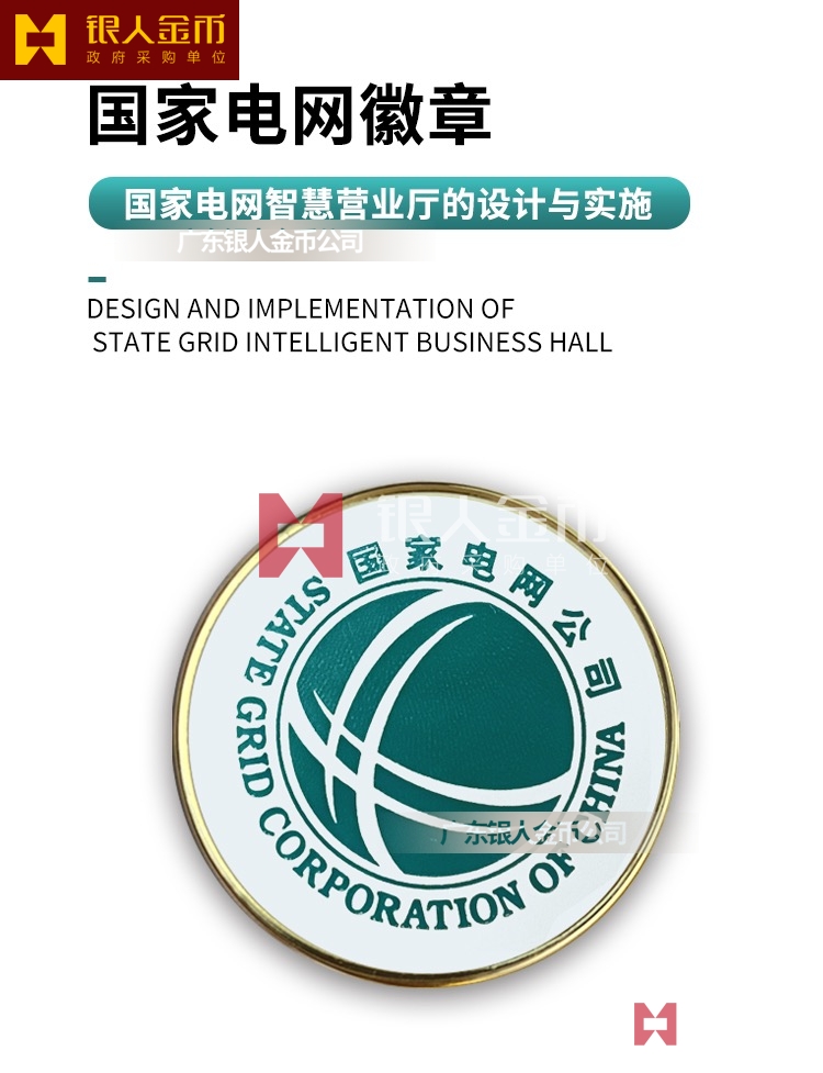 突出反映國家電網特色、彰顯國家電網“大國重器”“頂梁柱”責任擔當的國家電網公司司徽也正式亮相。會議要求,做好司歌傳播傳唱工作,深入開展司歌傳唱活動、傳播工作,做到員工人人能唱、社會耳熟能詳、輿論廣泛好評;做好司徽推廣應用工作,指導員工正確、規范佩戴司徽,廣泛傳播司徽理念和品牌價值。廣東銀人徽章廠有限公司提供最新版標準國家電網徽章,國家電網徽標,最新版國家電網司徽,國家電網標徽,員工司徽制作生產。是國家電網品牌建設戰略合作伙伴和品牌標識國家電網司徽徽章工藝標準制定企業。