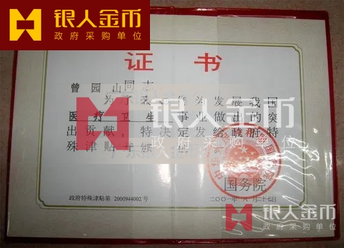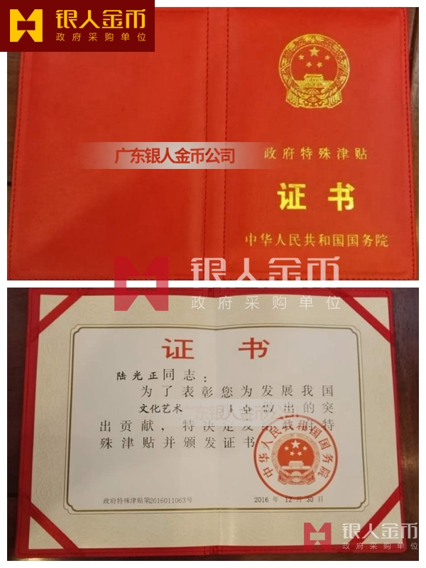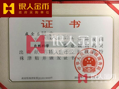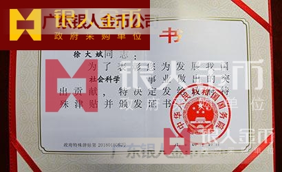 中華人民共和國(guó)國(guó)務(wù)院政府特殊津貼證書(shū)(圖)-【廣州銀人紀(jì)念章證章廠家有限公司】