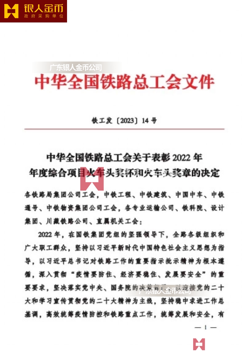 全國(guó)鐵路系統(tǒng)最高榮譽(yù):國(guó)家鐵路局/中華全國(guó)鐵路總工會(huì)2022年度火車頭獎(jiǎng)?wù)伦C書(圖)