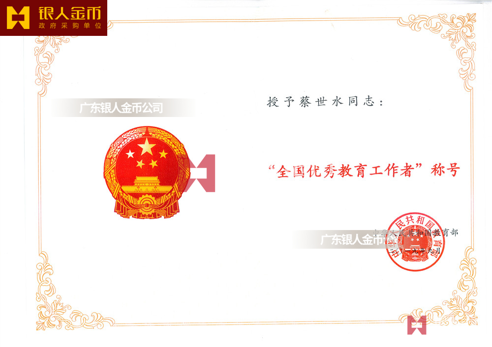 教育部全國教育系統先進集體和全國教育系統先進工作者獎章、獎牌、證書(圖)