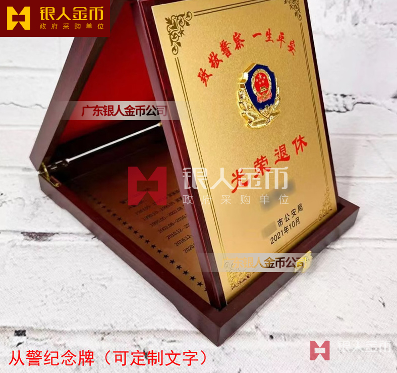 公安機關民警警察光榮退休紀念牌