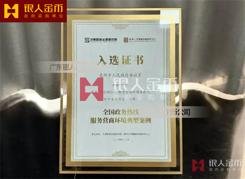 全國政務熱線12345服務營商環境典型案例示范單位獎牌證書牌匾(圖)