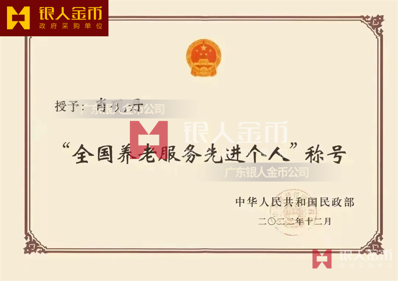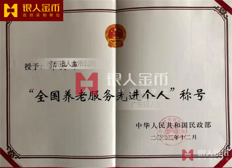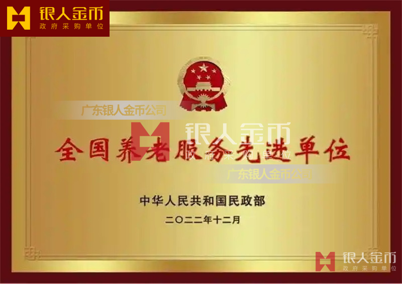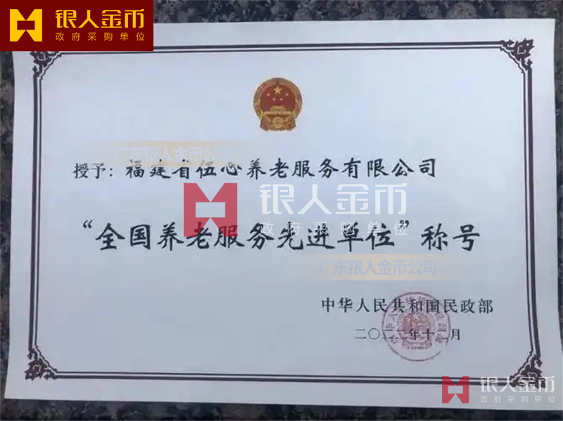 中華人民共和國民政部全國養老服務先進單位獎牌證書和先進個人獎章勛章紀念章證書(圖)