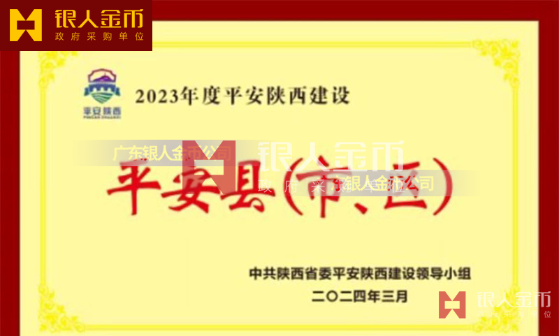 中共陜西省委政法委員會金鼎銀鼎銅鼎平安鼎和平安市區縣獎牌證書(圖)中共陜西省委平安陜西建設工作領導小組辦公室監制頒發頒授