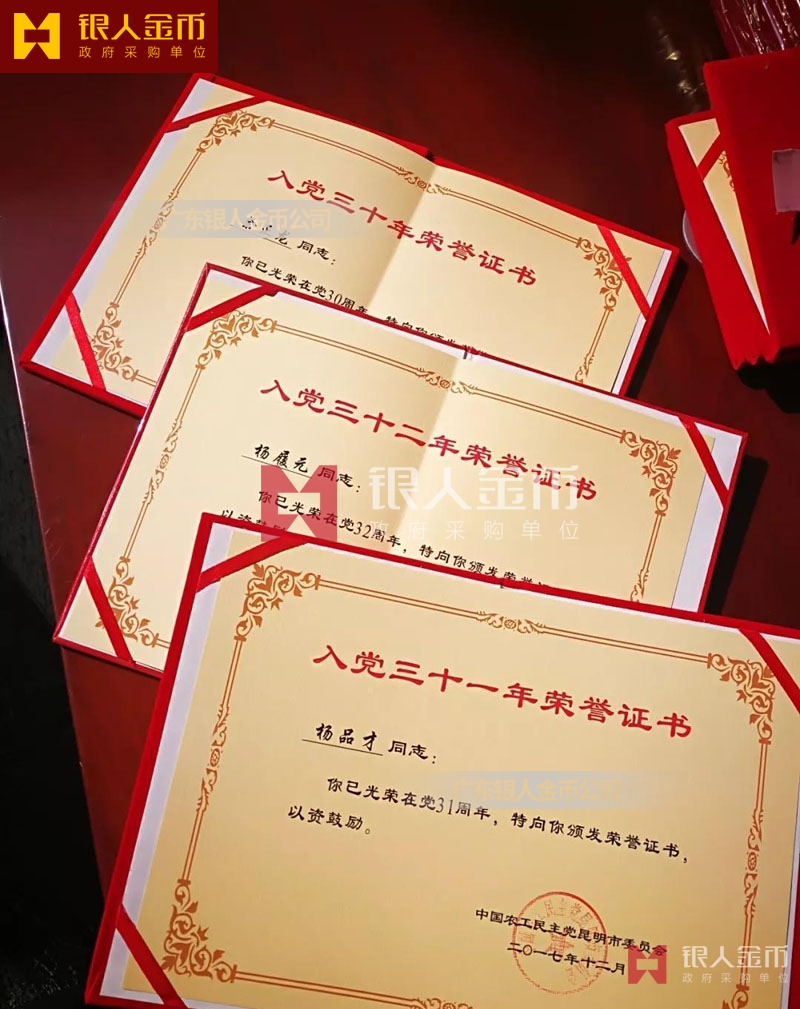 光榮在黨30年黨齡黨員紀念章、獎章獎牌、榮譽證書
