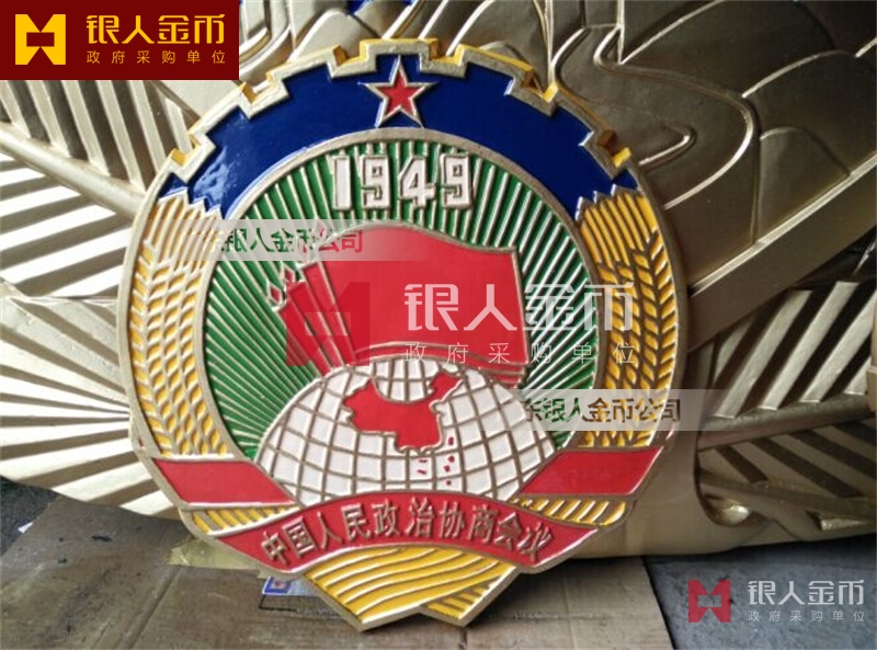國徽訂做、國徽生產、國徽批發、國徽制作、國徽銷售、國徽設計、國徽制做、國徽定做、國徽制造、國徽加工、國徽零售我們做為一個對人民和政府負責任的企業,用精湛的工藝來報答人民服務忠于國家和人民的群體,用專業來服務,【廣州天河徽章廠】制作大型標志徽章是嚴格按照《中華人民共和國國徽標準[GB15093-94]的規定制作,公安警徽按照《人民警察警徽技術標準》[GA244-2000]制作,其他標志制作按照國徽標準來制作。是采用高強度輕鋁合金為材料,并采用先進的浸透壓延鑄造技術,高光澤靜電均布式噴烤漆和先進貼金工藝,掛徽表面噴涂進口透明防腐蝕漆加以保護。具有重量輕,高強度,拒風雨抗日曬,色彩鮮艷,永不褪色的特點。高光澤靜電均布式噴烤漆和先進貼金工藝,掛徽表面噴涂進口透明防腐蝕漆加以保護。具有重量輕,高強度,拒風雨抗日曬,色彩鮮艷,永不褪色的特點。是會議室、禮堂、辦公大樓、機關大院等重要場所的必備標志 為全國顧客提供訂做、生產、批發、制作、銷售、設計、制做、定做、制造、加工、零售等各種形式的服務。如果你有以下疑問:大型國徽哪里有賣、國徽那里可以制作、國徽在哪里能買到、國徽哪能買到、國徽如何買到、國徽哪里可以買到、國徽現貨哪里可以買到、國徽哪里能買到、國徽哪里有出售、國徽哪有賣、有制作有做國徽的廠子、國徽那里能買到、國徽有賣、國徽多少錢,廣東銀人將為你一一解答,國徽制造企業制作訂購,【廣州徽章廠】大型掛徽標的生產工藝流程一般為:制作模具、澆筑、拋光、上漆、烤漆/貼金。我廠由于經營多年,常見的標志各種規格模具齊全,常見標志一般都有現貨。大型掛徽的常見規格有:40公分、50公分、60公分、70公分、80公分、90公分、1米、1.2米、1.4米、1.5米、1.8米、2米、2.5米、3米、3.5米等。