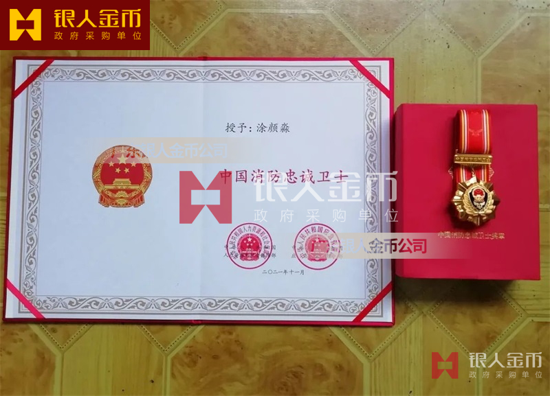 應急管理部中國消防忠誠衛士獎章與全國應急管理系統二級英雄模范獎章證書(圖)
