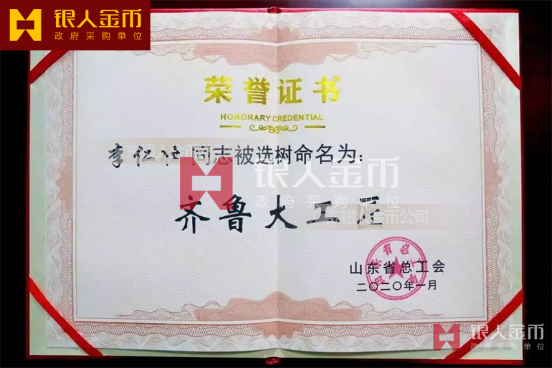 山東省委省政府省人社廳省總工會齊魯大工匠獎?wù)聞渍慢R魯大工匠獎杯獎牌證書(圖)