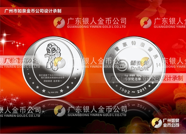 定制佛山雪萊特訂制純銀紀(jì)念幣定制?