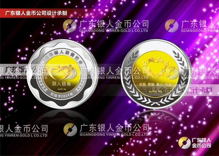珠海麗人慈善會(huì)成立周年慶典定制鑲金銀紀(jì)念幣定制、純銀鑲金銀紀(jì)念幣定制