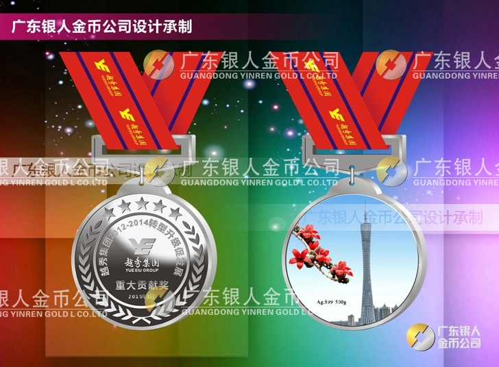 越秀集團(tuán)定制純銀獎(jiǎng)牌制作銀質(zhì)獎(jiǎng)?wù)露ㄖ?