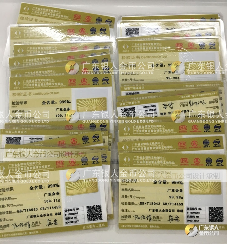 廣東銀人金幣公司承接客戶個(gè)性化定制的金銀幣、金銀章、金銀條、金銀牌、金銀盤均由國家質(zhì)監(jiān)部門、嚴(yán)格檢測、權(quán)威鑒定: