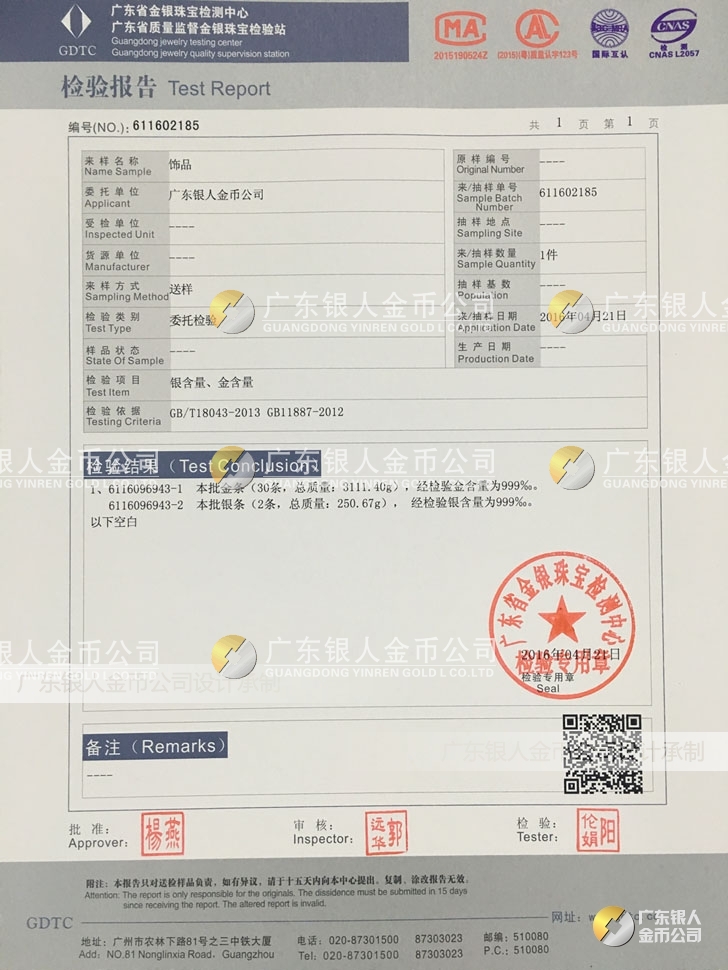 【金銀品質】 國家檢測鑒定、真假防偽查詢