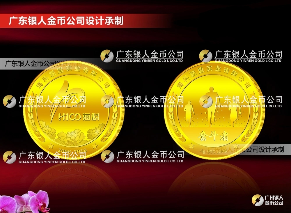 大連海科聯盟主攻房地產、醫院、樓盤導向標識、標牌工程項目,委托我司設計制作公司10周年紀念金銀幣定制。
