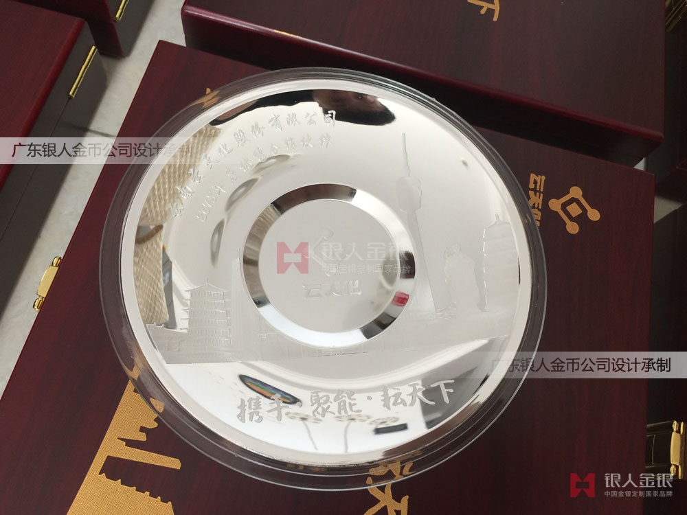 值此紀念改革開放40周年之際,昆明云南云天化股份有限公司為表彰優秀經銷商、頒發授予純金銀紀念盤,以資鼓勵。