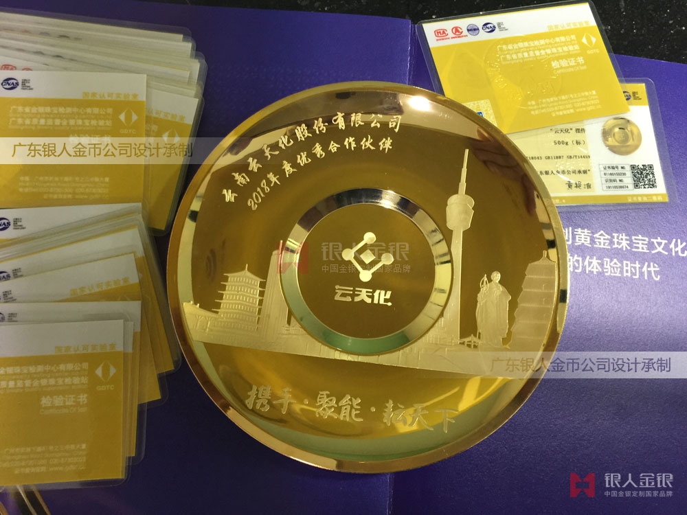國家金銀制品金銀成色鑒定證書-昆明云天化金盤定制_銀盤定做_獎盤制作_紀念盤定制