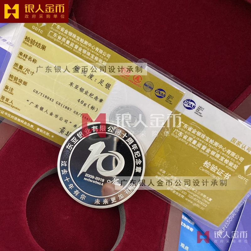 東亞鋁業(yè)集團(tuán)在創(chuàng)業(yè)十年后恰逢公司成立10周年紀(jì)念慶典、委托定制銀幣紀(jì)念幣1200枚。