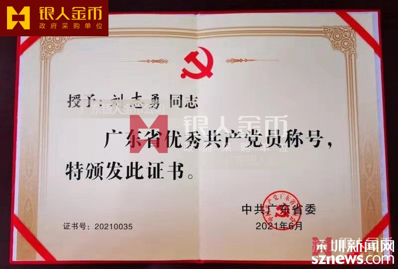 中共廣東省委組織部兩優一先獎牌獎章證書優秀共產黨員獎勵證書_全省優秀黨共產黨員榮譽證書_廣東省優秀共產黨員榮譽稱號榮譽獲獎證書
