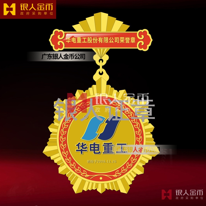 北京央企華電重工年終總表彰獎勵突出貢獻榮譽章定制_表彰獎勵頒發榮譽證章制作_先進員工證章訂制_榮譽徽章證章廠生產制造勛章獎牌獎章紀念證章和紀念徽章