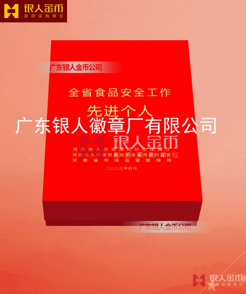 河南省政府食品安全工作先進(jìn)個人獎章定制_表彰獎勵勛章定制_工商市場監(jiān)管局單位獎牌獎?wù)露ㄖ?/span>_市場監(jiān)督管理局證章定制定做制作