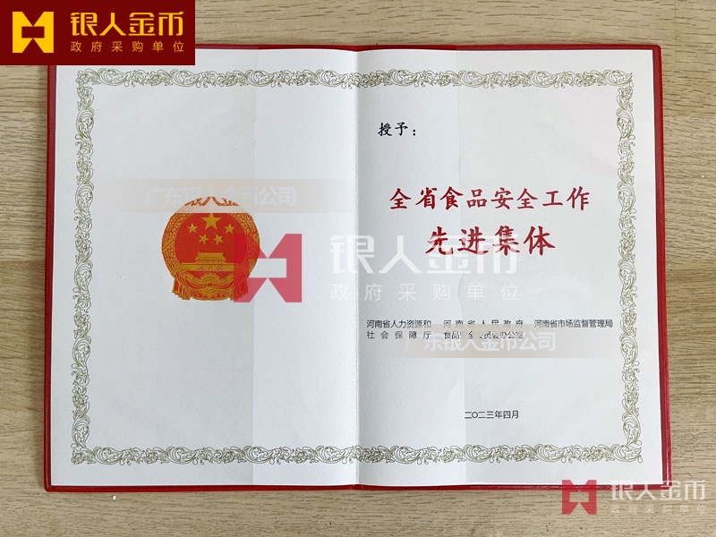 【證書制作】 廣東銀人金幣公司-獎勵證書制作廠家