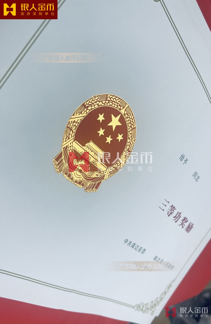 【證書制作】 廣東銀人金幣公司-獎勵證書制作廠家
