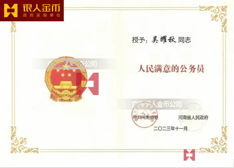 【公務員獎章證書制作】 廣東銀人金幣公司-獎牌證書定制