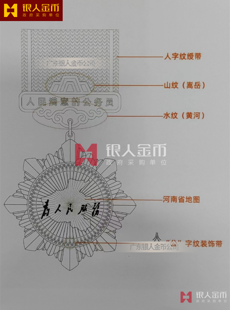 中共河南省委、河南省人民政府、中共河南省委組織部、? 河南省人民滿意的公務員獎章勛章定制_人民滿意的公務員榮譽稱號獎章勛章定做_公務員獎牌制作_公務員功勛章制作_公務員記功獎章制作