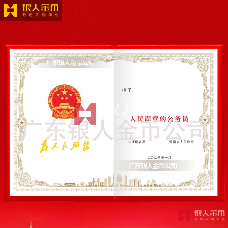 中共河南省委、省政府、省委組織部、人民滿意的公務員稱號榮譽證書定制_【政府采購單位】中共河南省委、河南省人民政府、中共河南省委組織部、 河南省人民滿意的公務員稱號榮譽證書定做_人民滿意的公務員集體榮譽稱號獎勵證書定制_公務員獎勵證書訂做_公務員記功證書制作_公務員立功證書定做